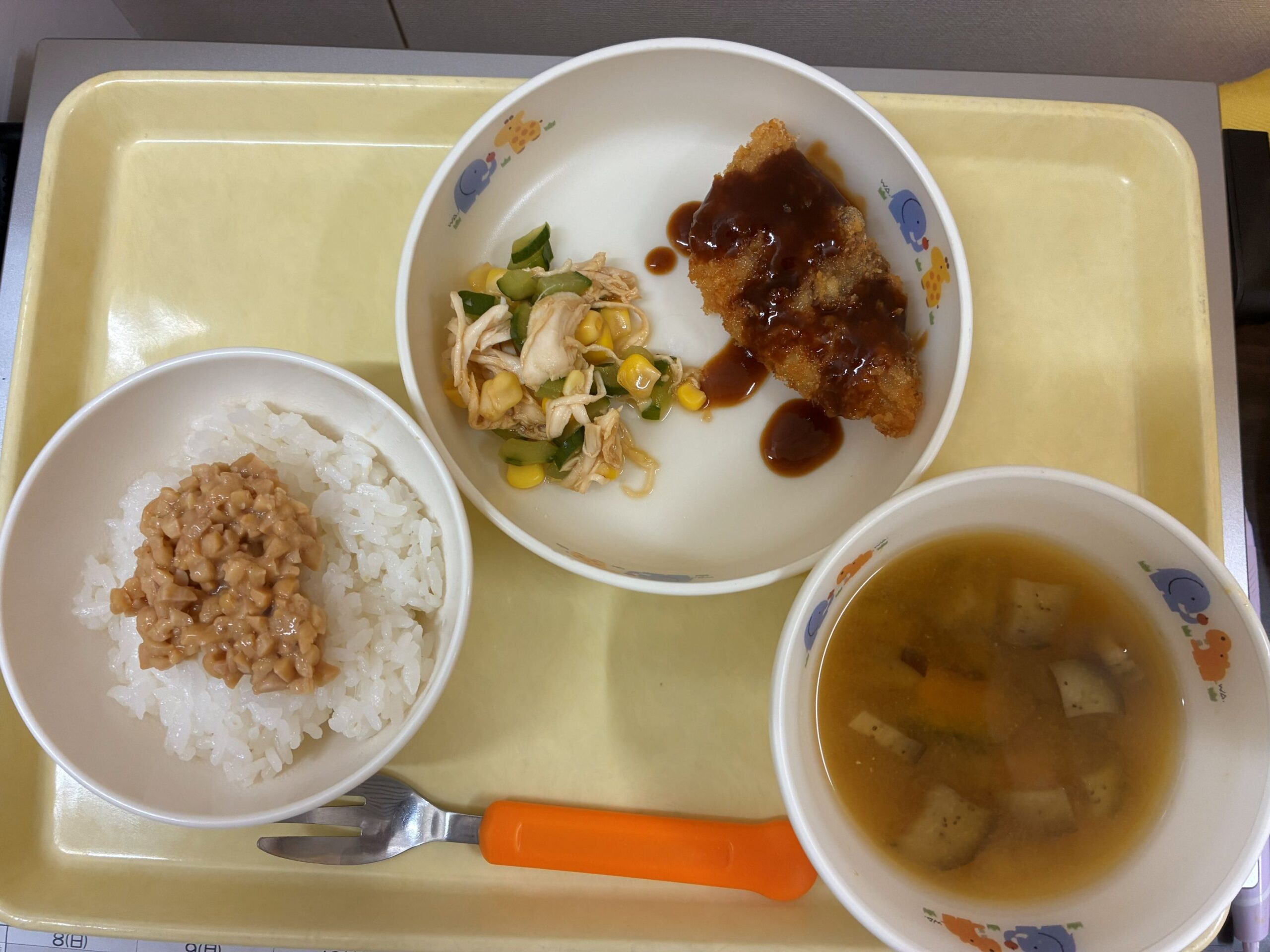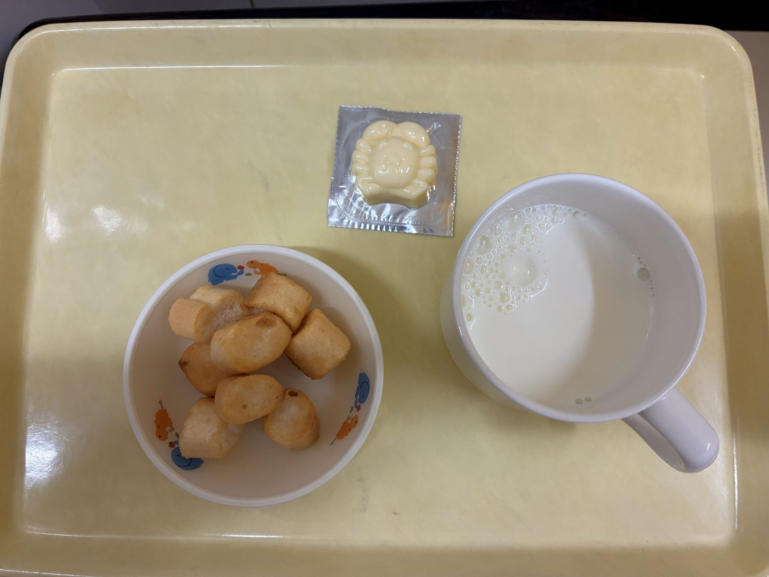 納豆ご飯は、人気でよく食べてました。 白身魚フライは、美味しいと言って食べていました。 キャラメルラスク、チーズは、よく食べてました。