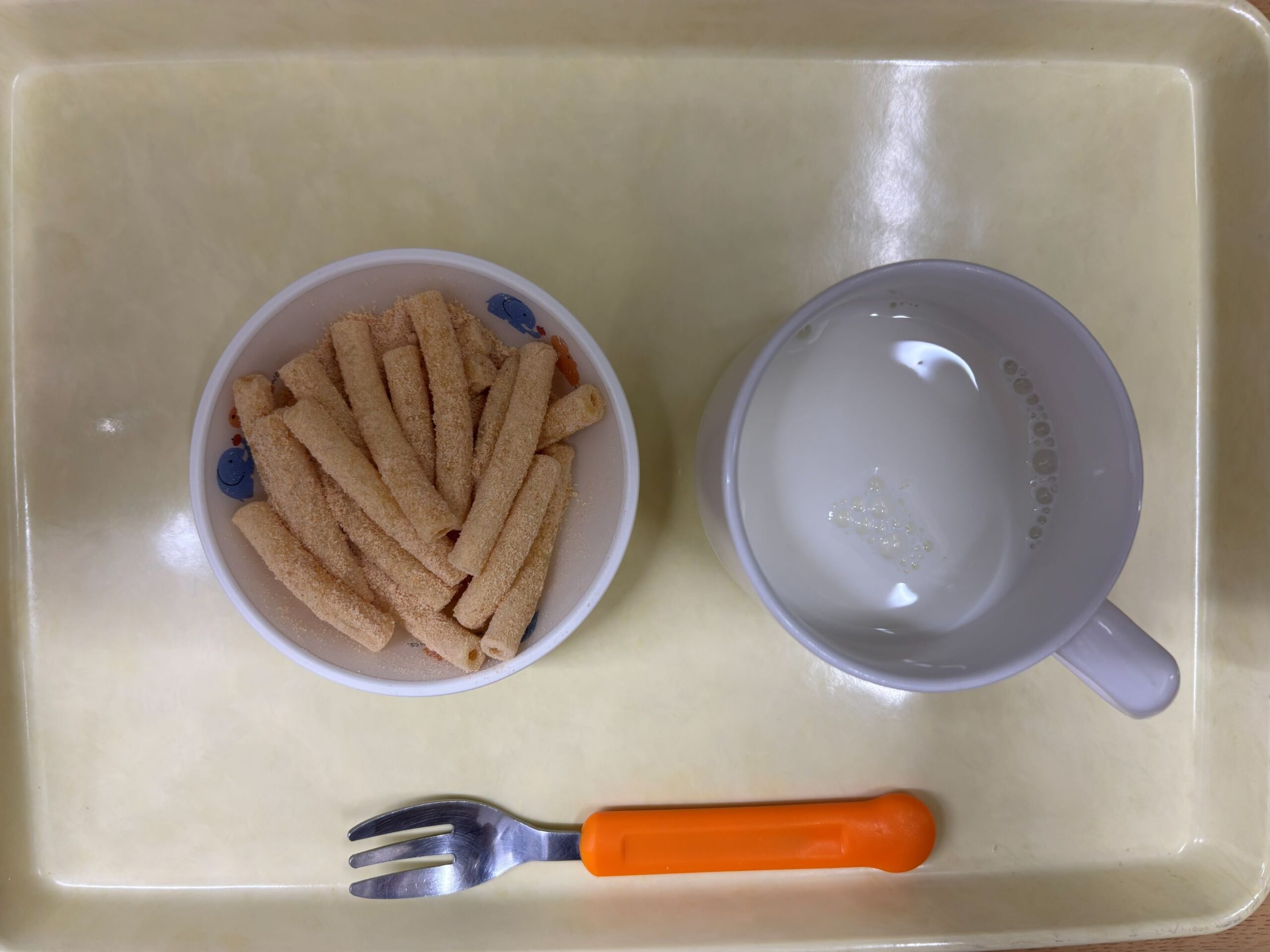おやつのマカロニきな粉は、子ども達が大好きでみんな完食でした。