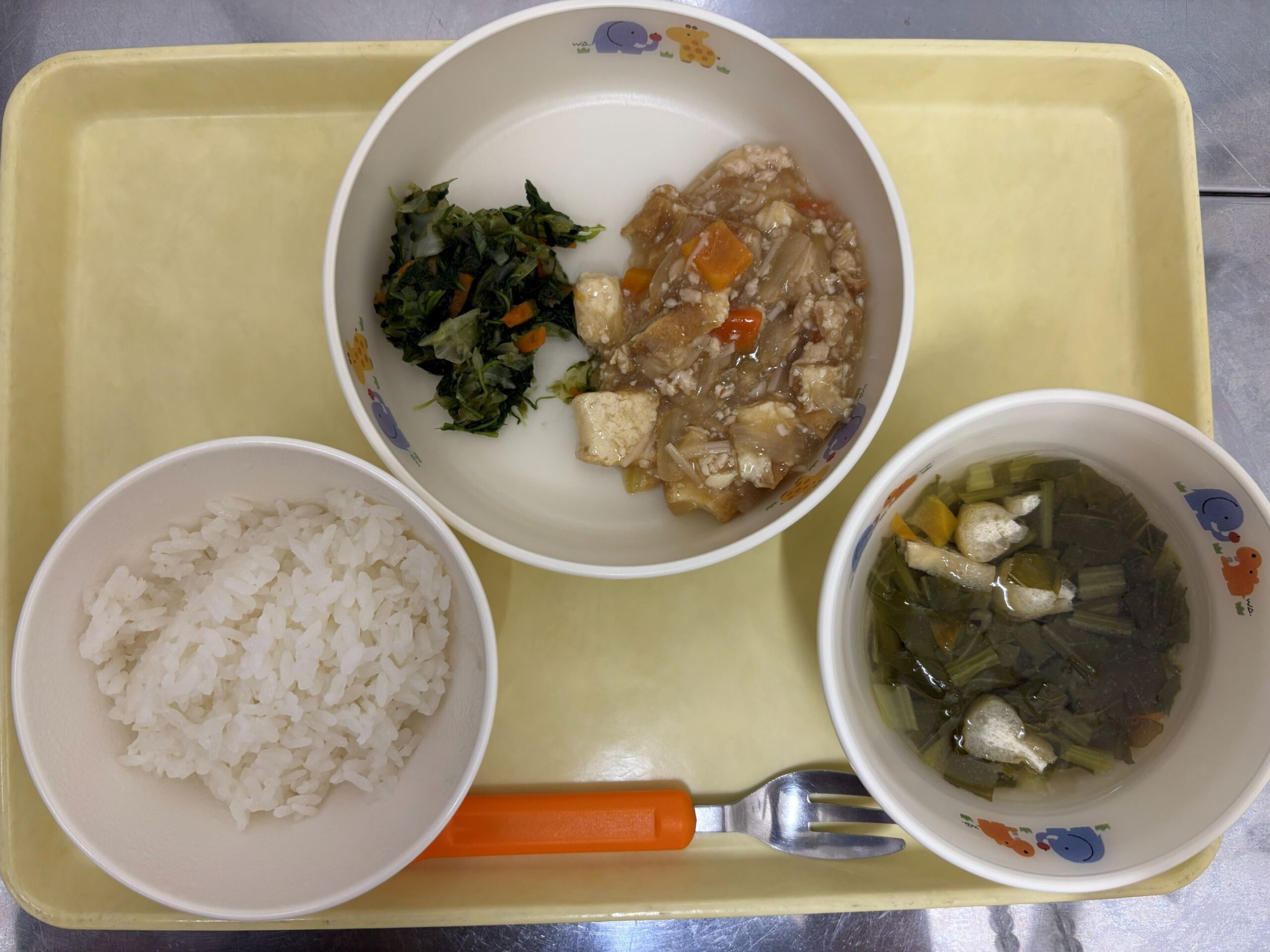 今日は、みんなどれもよく食べてました。厚揚げのそぼろあんは、御飯にのせて食べている子もいました。