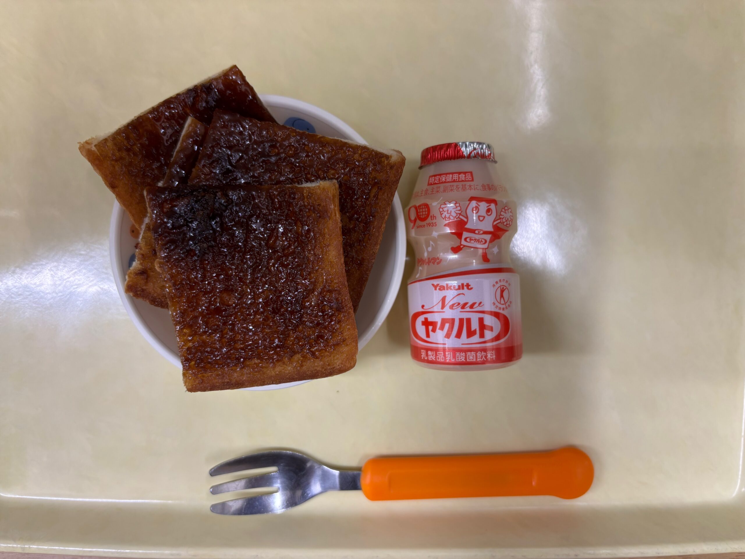 おやつの黒糖トーストもヤクルトもみんな完食でした。