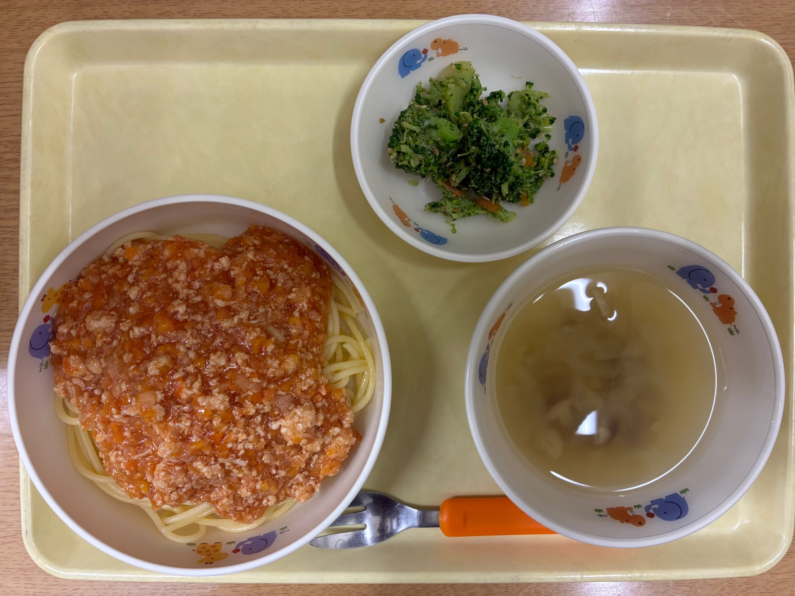 ミートスパゲティ ブロッコリーサラダ きのこスープ