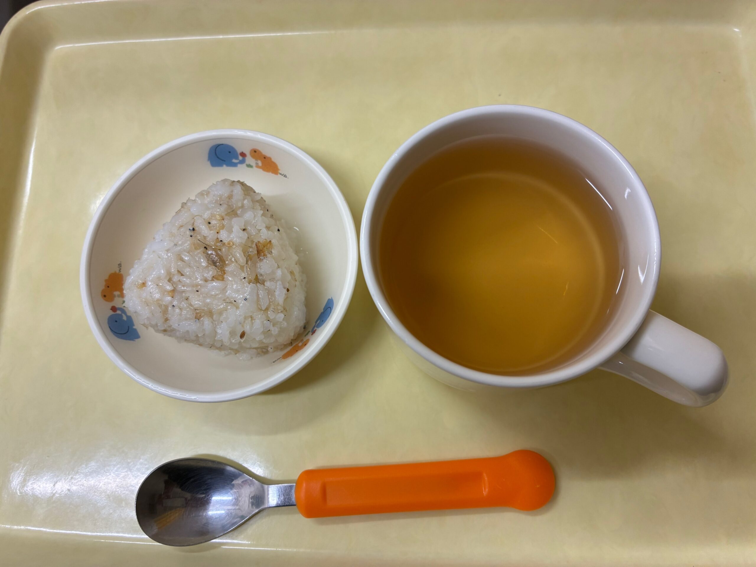 今日は、けんちんうどんでした。みんな沢山おかわりしてました。 さつまいもサラダもよく食べていました。 おやつのじゃこごまおにぎりも完食してました。