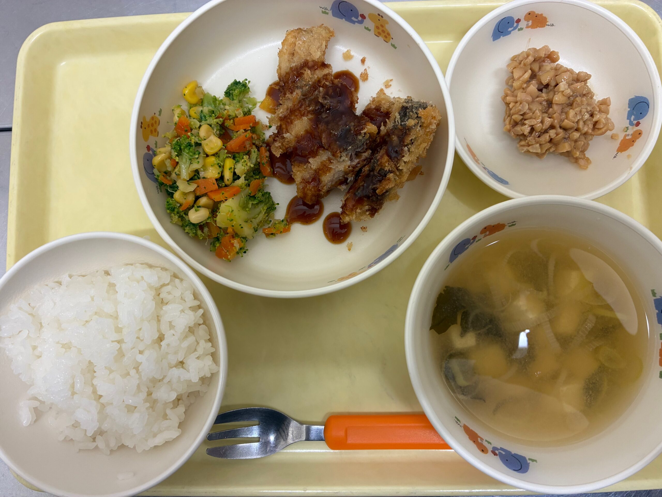 納豆ご飯 さけフライ ブロッコリーサラダ みそ汁