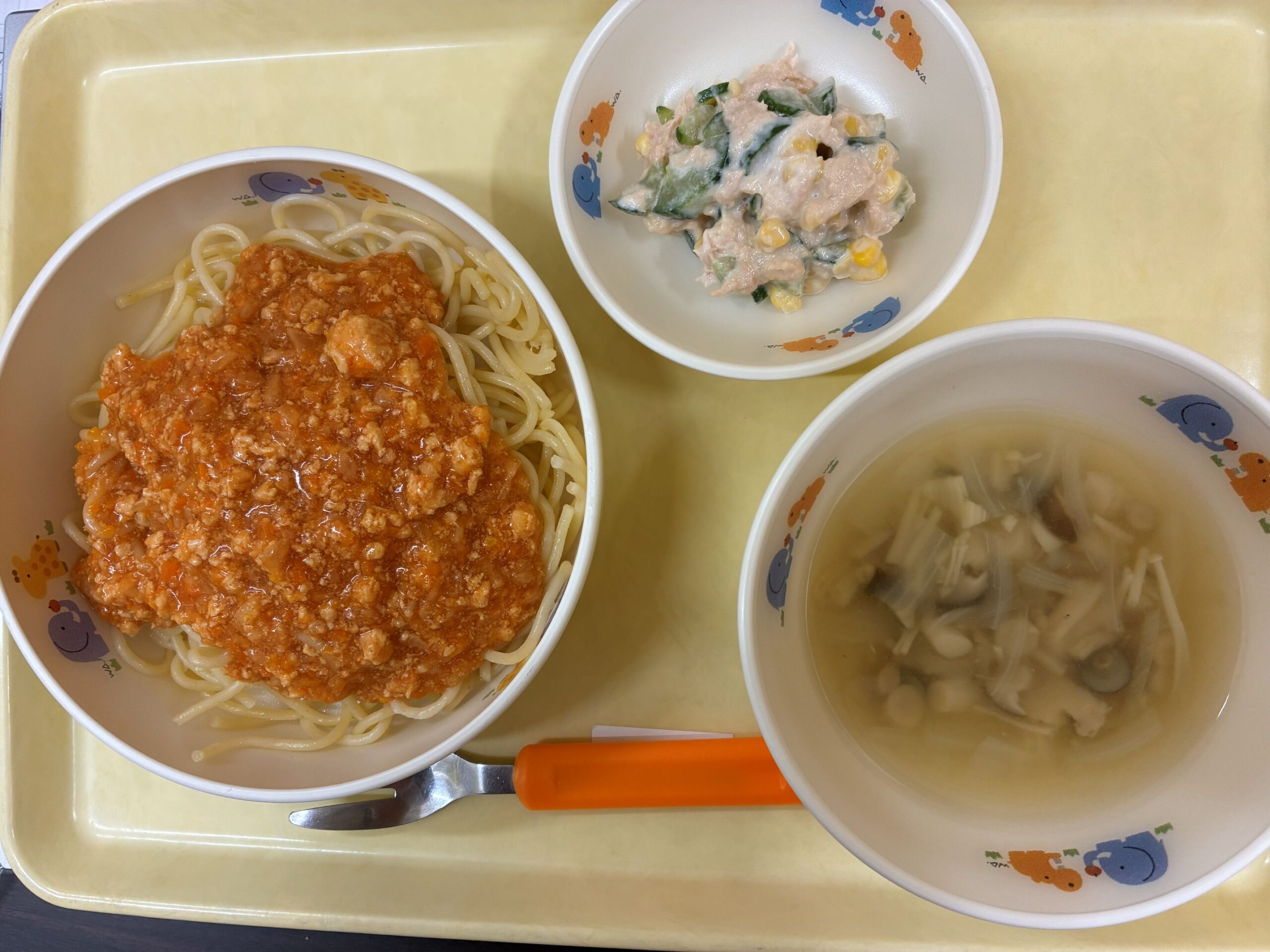 ミートスパゲティ ツナコーンサラダ コンソメスープ