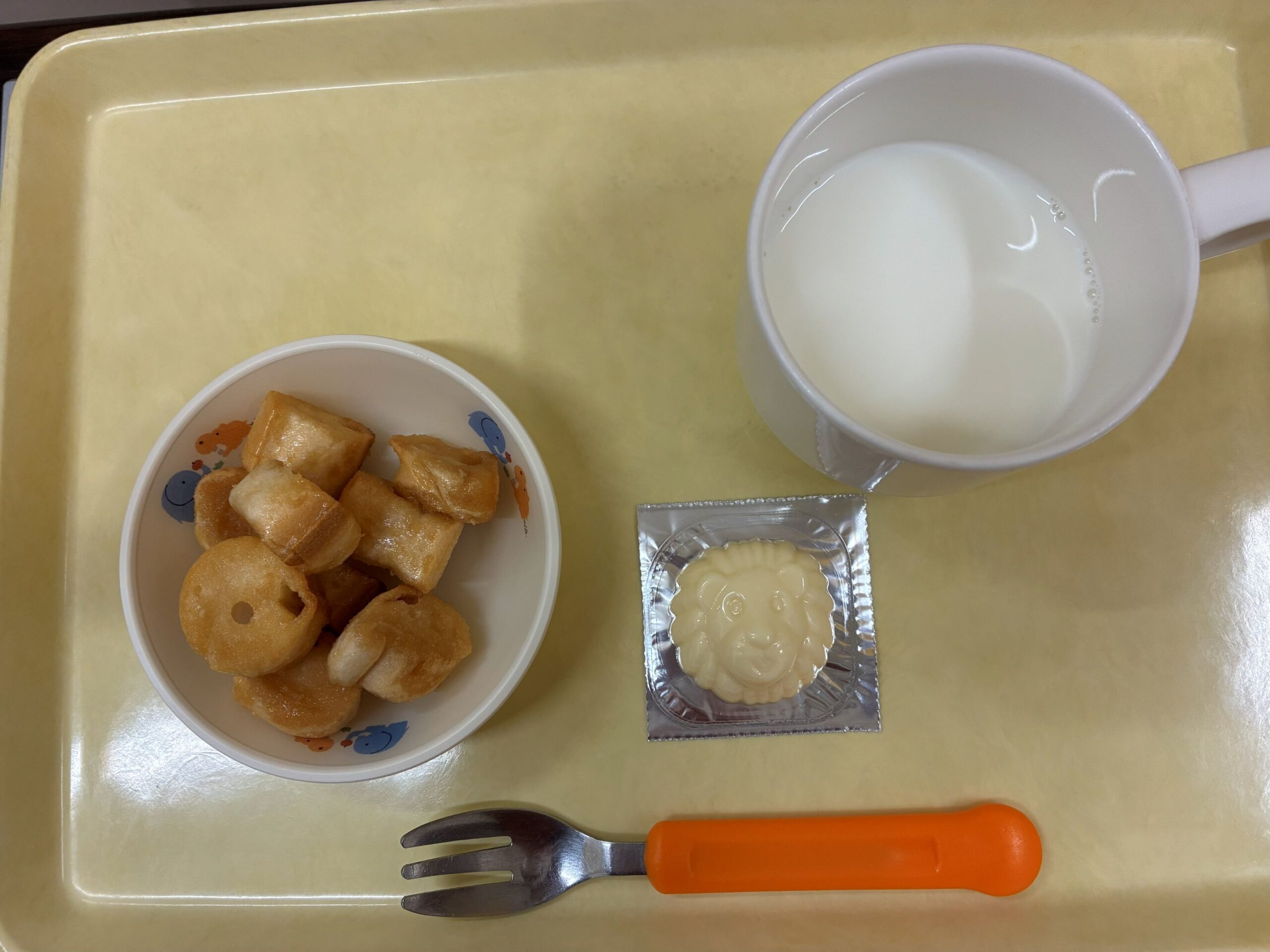 人気のスパゲティよく食べてました。 ツナコーンサラダは、ツナとコーンを拾って食べてました。 カラメルお麩ラスクは、甘くてサクサクして美味しいと食べてました。