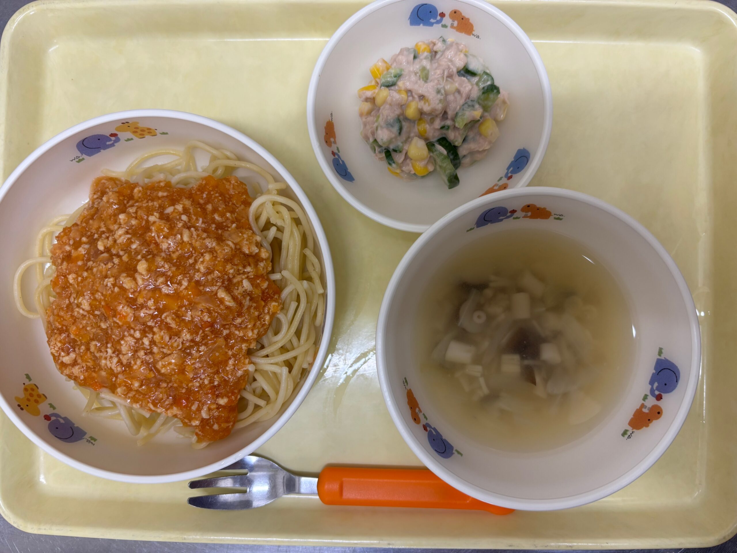 ミートスパゲティ ツナコーンサラダ コンソメスープ