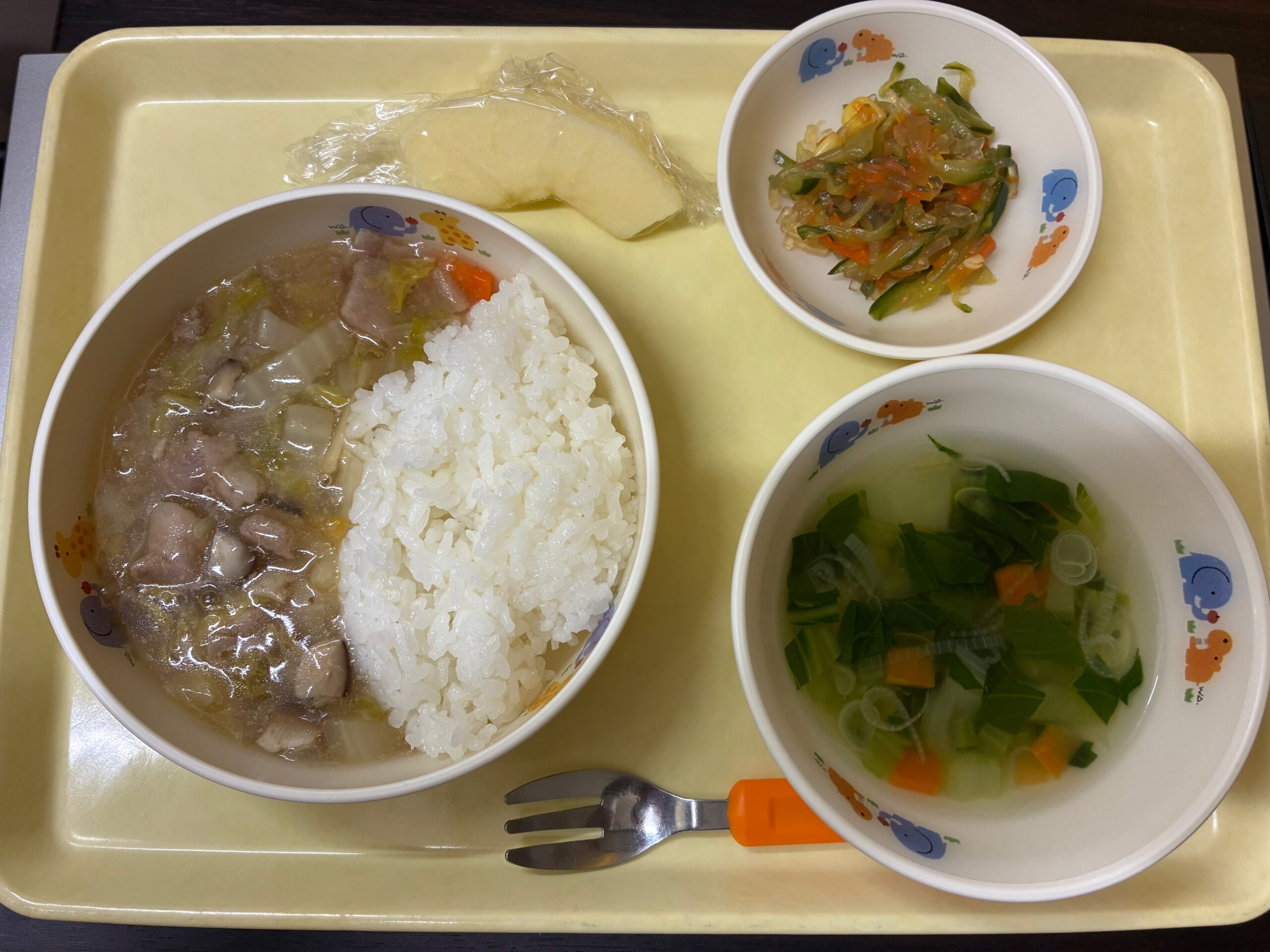 中華丼 はるさめサラダ 中華スープ りんご