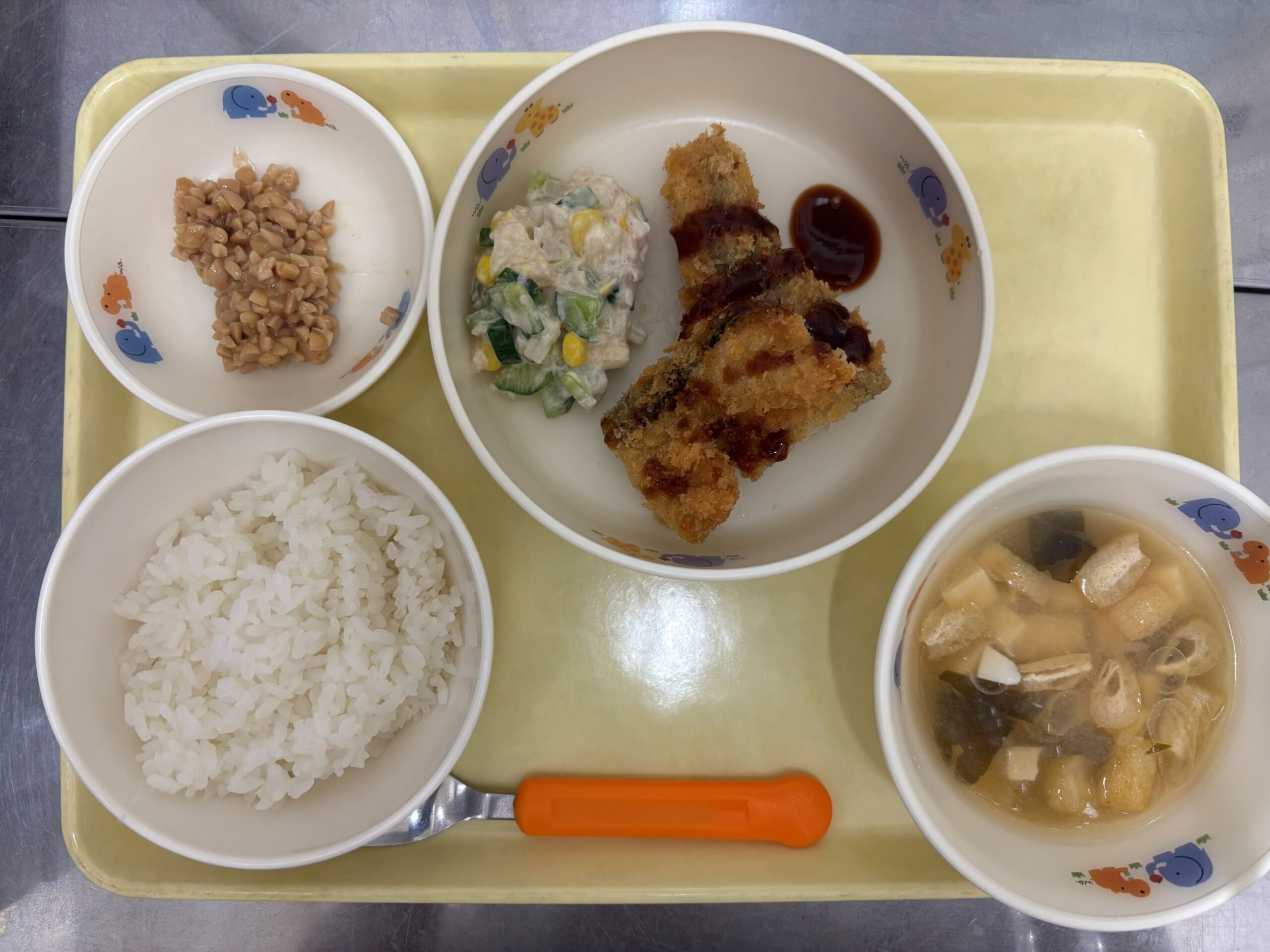 今日は、子ども達が大好きなメニューでした。 どれもよく食べておかわりも沢山してました。 おやつのいちごジャムパンは、好き嫌いがわかれていました。
