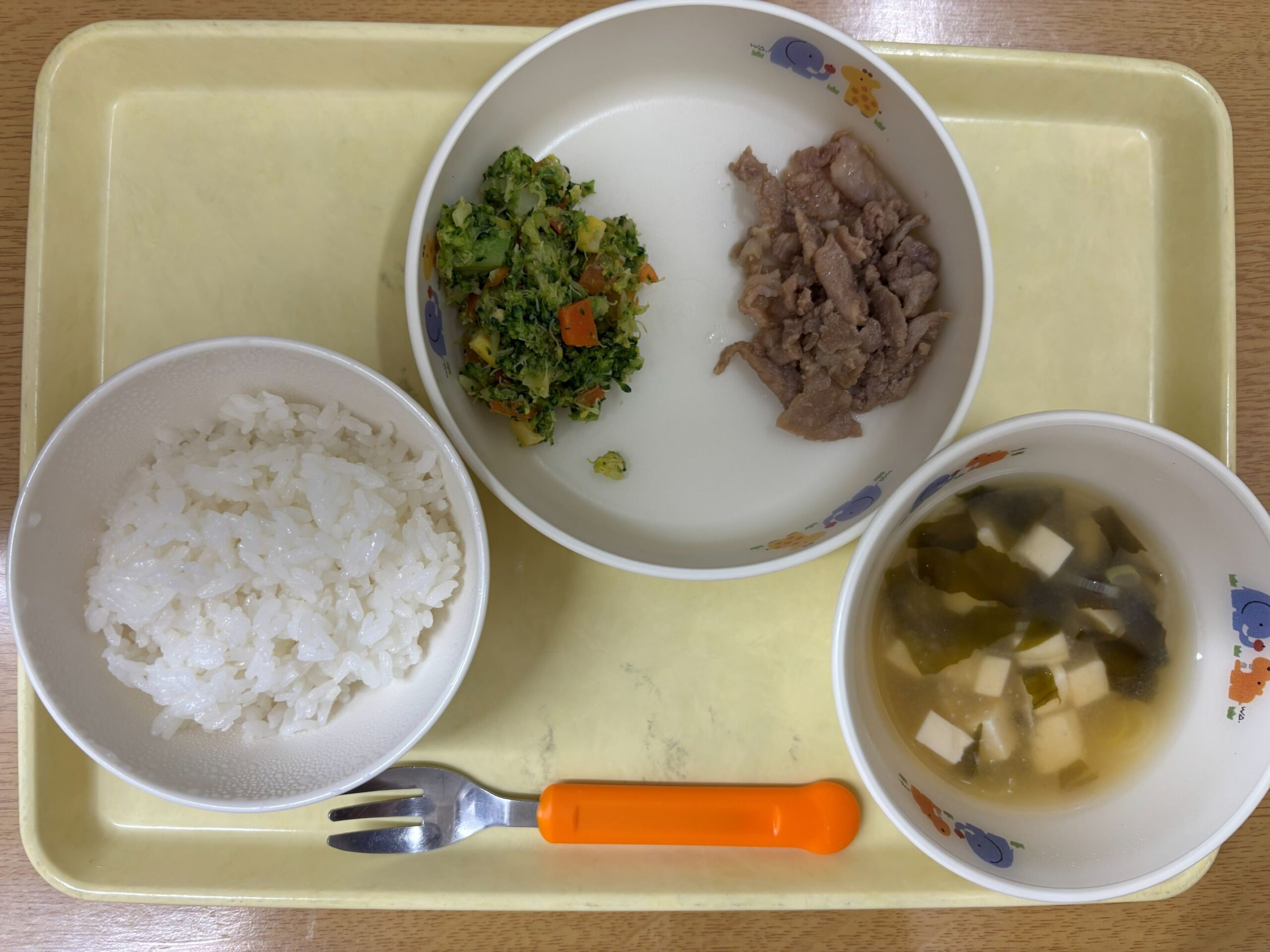 今日は、みんなよく食べてました。 特に豚肉の生姜焼きが美味しかったと言ってました。 おやつのマカロニきな粉は、子どもたちが大好きで完食でした。