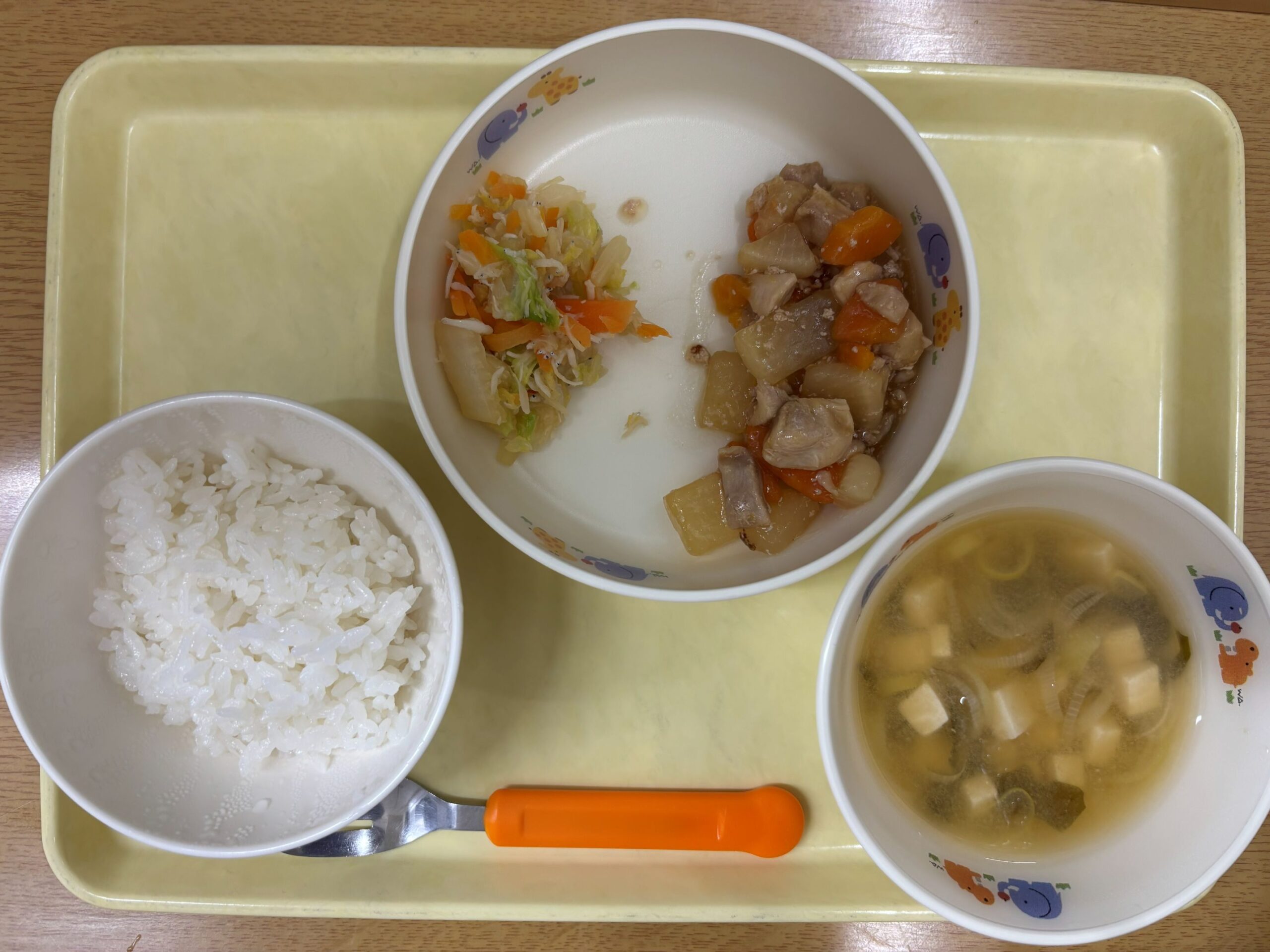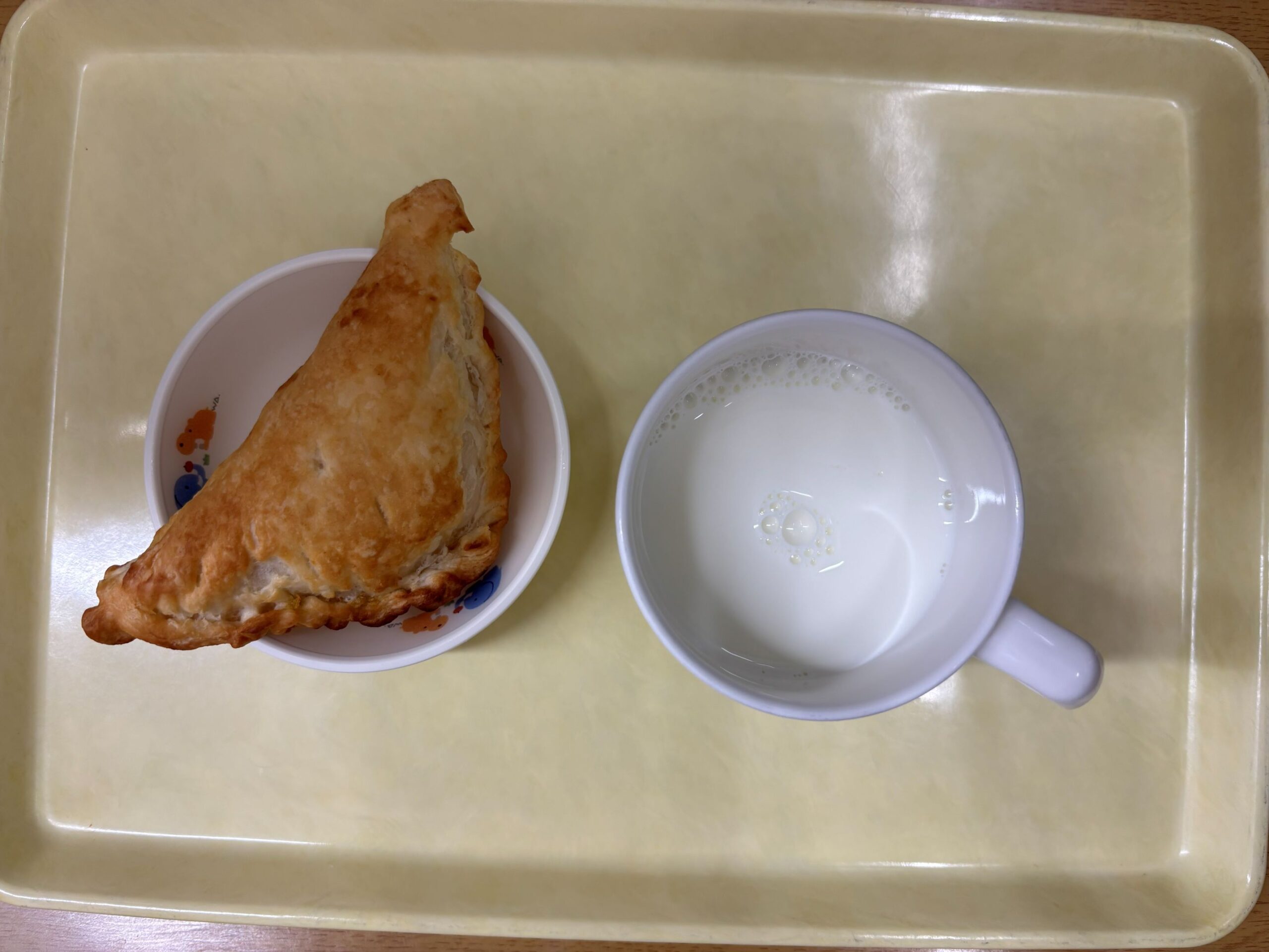 今日は、みんなよく食べてました。 残食も少なかったです。 おやつのアップルパイは、みんな完食でした。