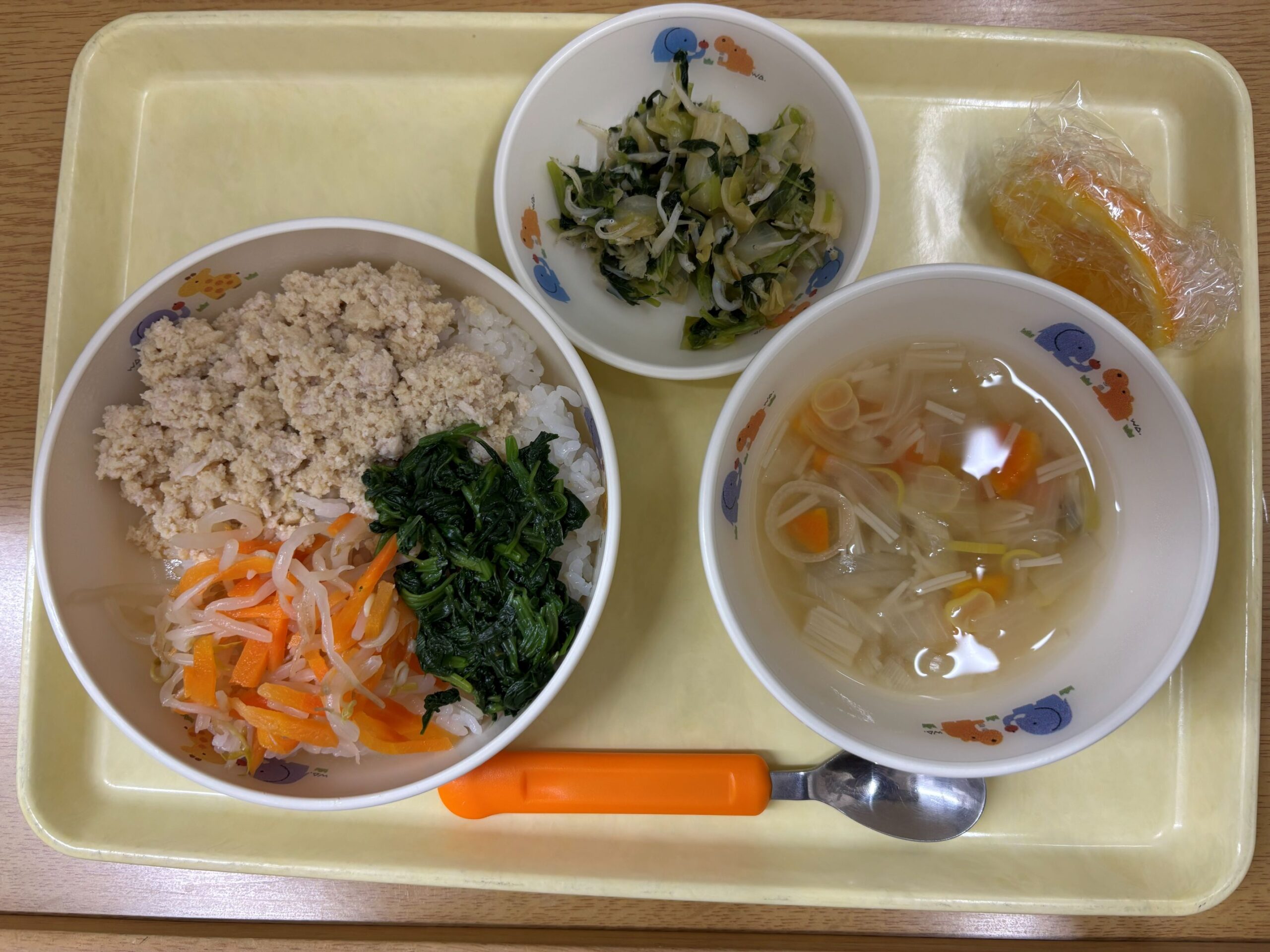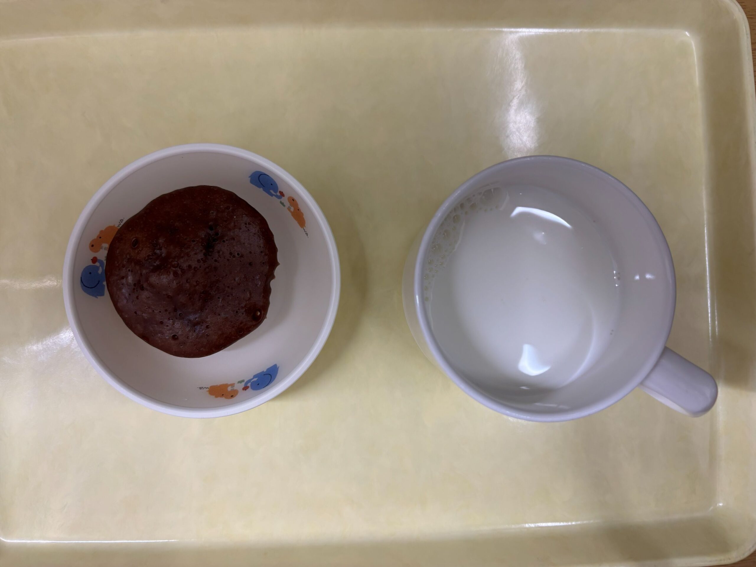 今日は、野菜が沢山取れる献立でした。 みんなよく食べてました。 おやつのココア蒸しパンもみんな完食でした。
