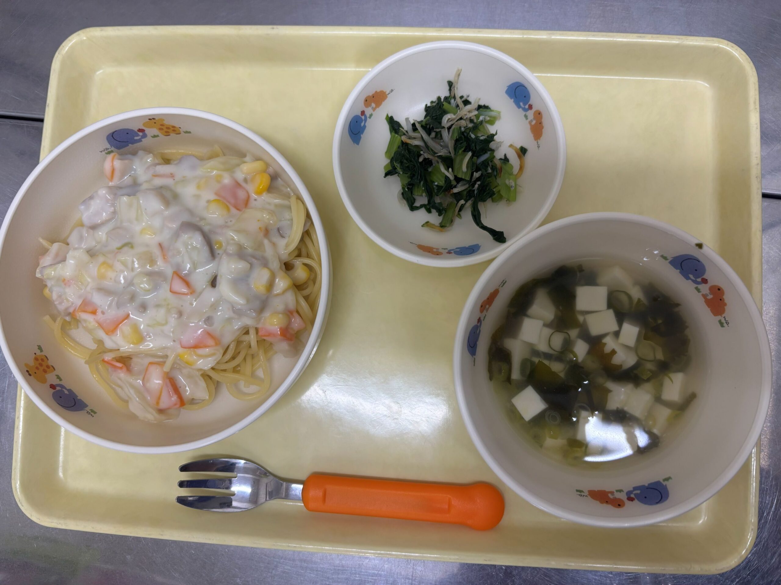 今日は、クリームパスタが苦手な子が多くて残食が多かったです。