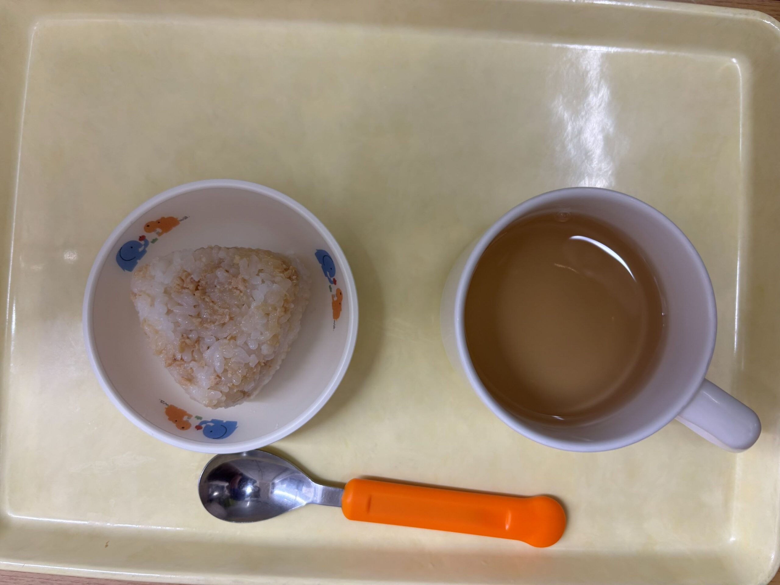 おやつの鶏そぼろおにぎりは、みんな完食でした。
