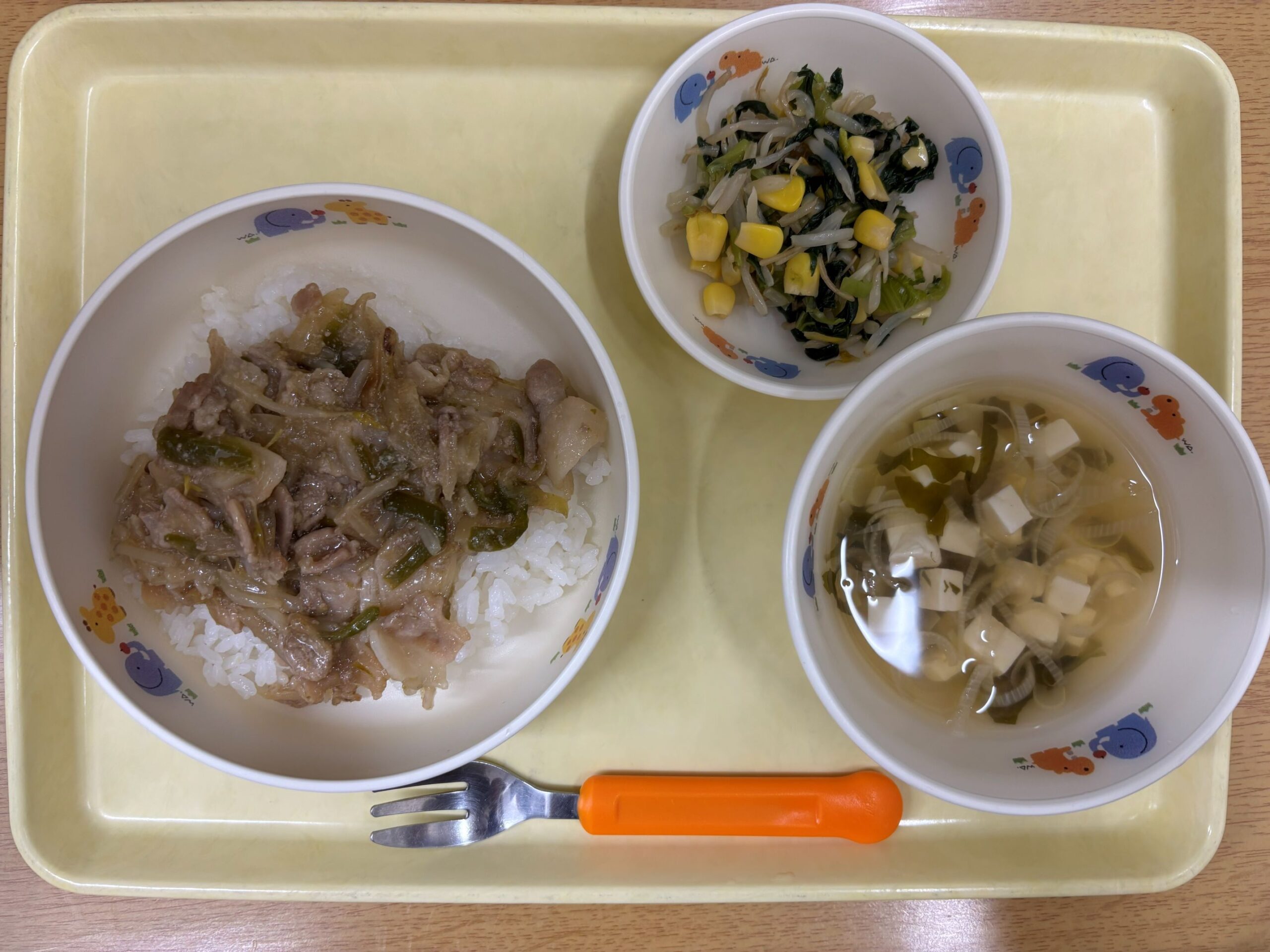 プルコギ丼 小松菜とコーンのナムル風 豆腐のすまし汁