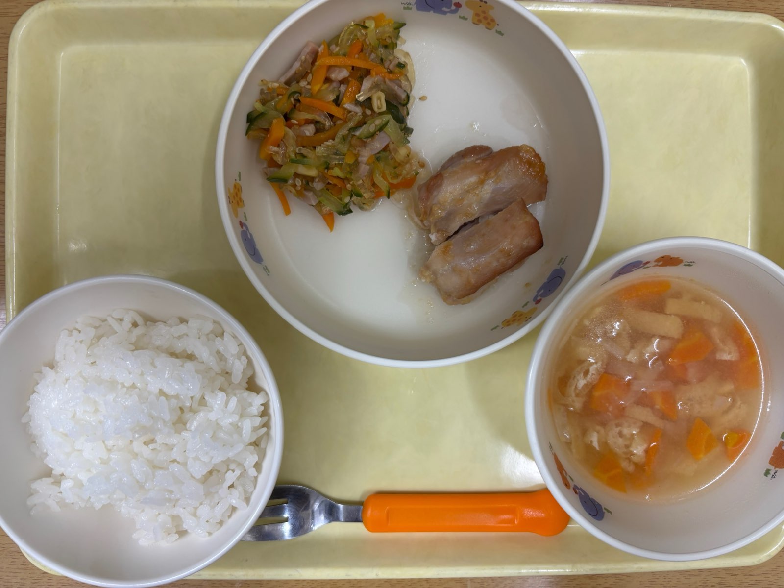 鶏の味噌焼きがよく味が染みてて、柔らかったので子ども達もご飯とよく食べていました。 おやつも二種類だったのでみんな喜んでいました。